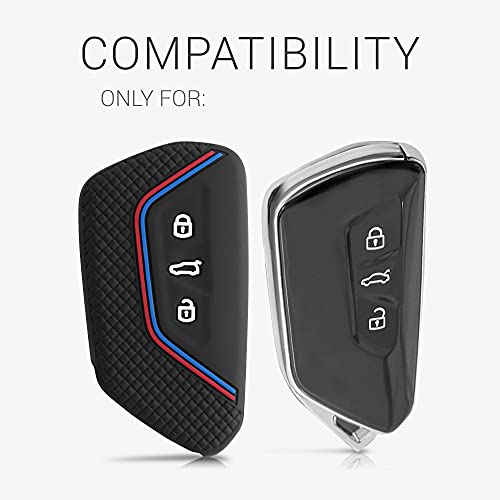 Specification: kwmobile autosleutel hoesje compatibel met VW Golf 8 3-knops autosleutel – Autosleutel behuizing in zwart/rood/blauw