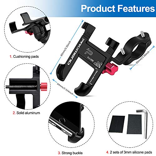 ❉ Solide en veiligheid: telefoonhouder voor de motorfiets van massief aluminiumlegering, instelbare breedte voor je telefoon. Absorbeert alle schokken in tegenstelling tot kunststof dragers. Duurzame aluminiumlegering, bevestig uw mobiele telefoon stevig aan de fiets. Nooit vallen, ook niet op een hobbelige weg.