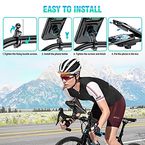 【Universele telefoonhoes en beveiligingsupgrade】 De waterdichte fiets-telefoonhouder heeft de nieuwste schokabsorberende pad en geavanceerde 3 beveiligingsvergrendeling, biedt maximale ondersteuning en volledige bescherming. Telefoonfietshouder compatibel met 5,5-6,8 inch smartphones (telefoonmaat 16,8 (L) *8,3 (B) *1.1 (T) cm), GPS-apparaten, zoals iPhone X/XS/XR/11/11 pro max/12/12 pro max, HUAWEI Mate 9 Pro, Mate 8/Mate 10 Pro/P30/P30/P30 pro/P4 0/P40 pro/Honor 7, Samsung S21/S8 plus/S10/S10 plus/S6.
