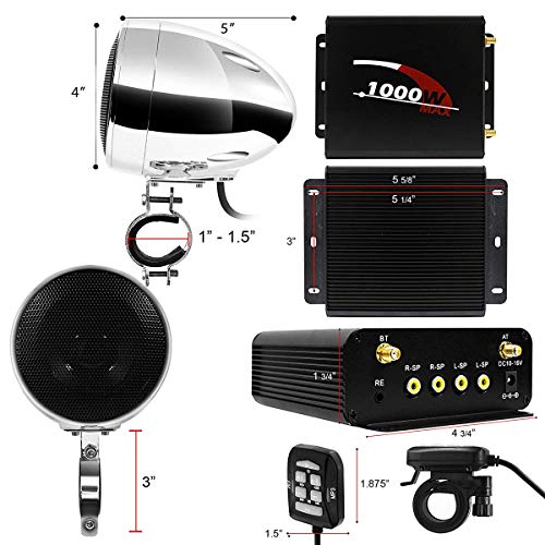 Specification: Aileap 1000W 4 Kanaals Motor Versterker 4″Full Range Waterdichte Bluetooth Motorfiets Stereo Speakers Audio Systeem Met Aux usb Sd Fm Radio Voor 1-1.5″ Stuur Harley Cruiser Atv Utv (Chrome, netto)